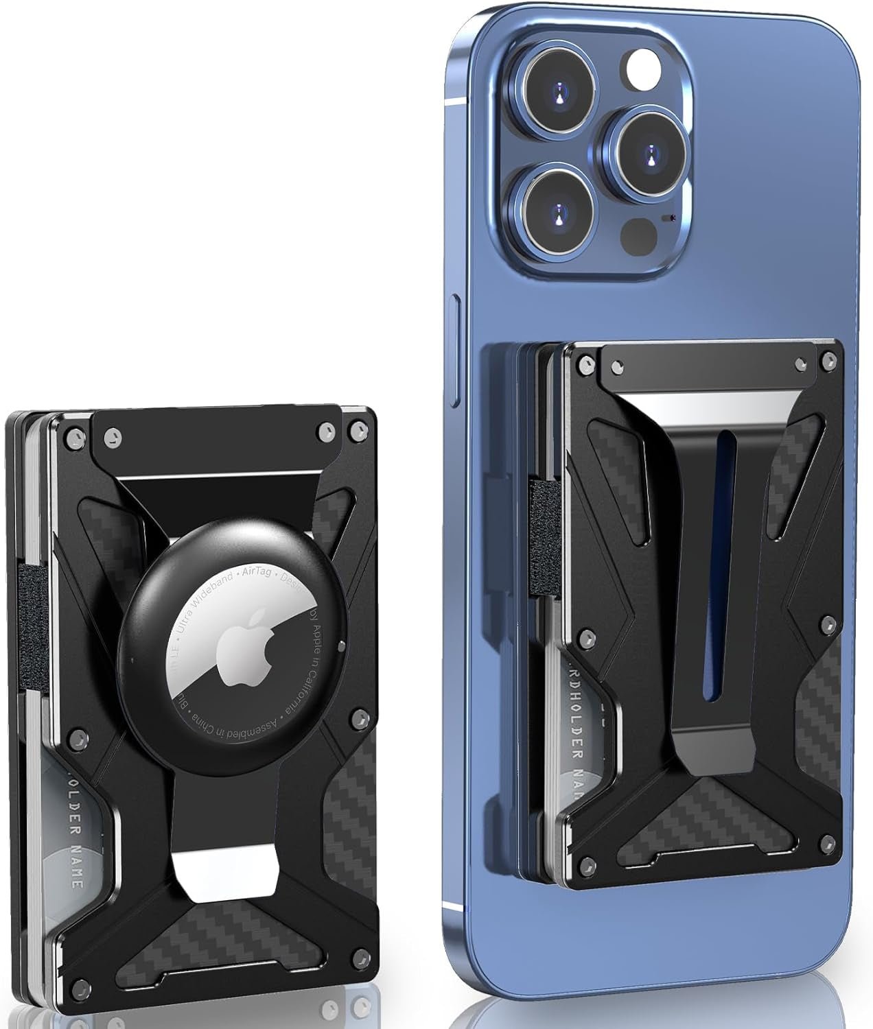 MagSafe Wallet for iPhone with AirTag Holder – RFID Blocking Metal Card Holder with Money Clip