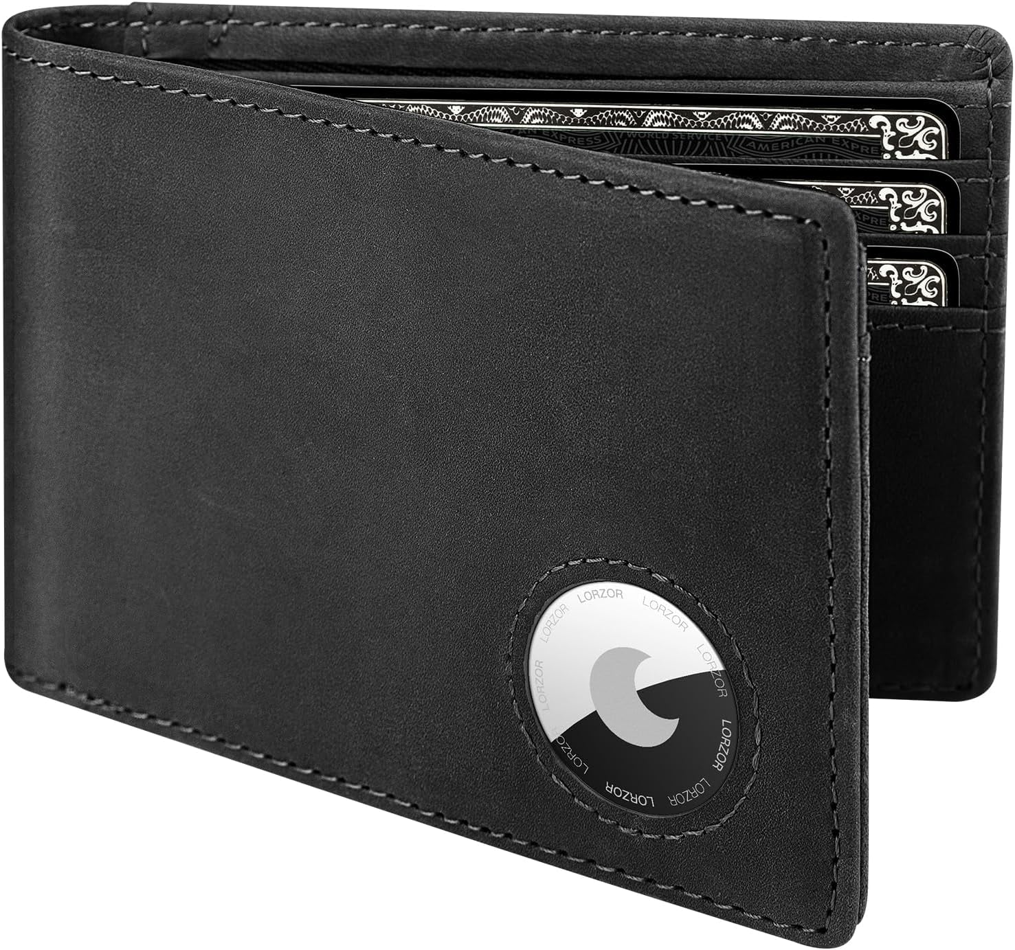 Men’s Slim Leather Wallet with AirTag Holder – RFID Blocking Bifold Wallet