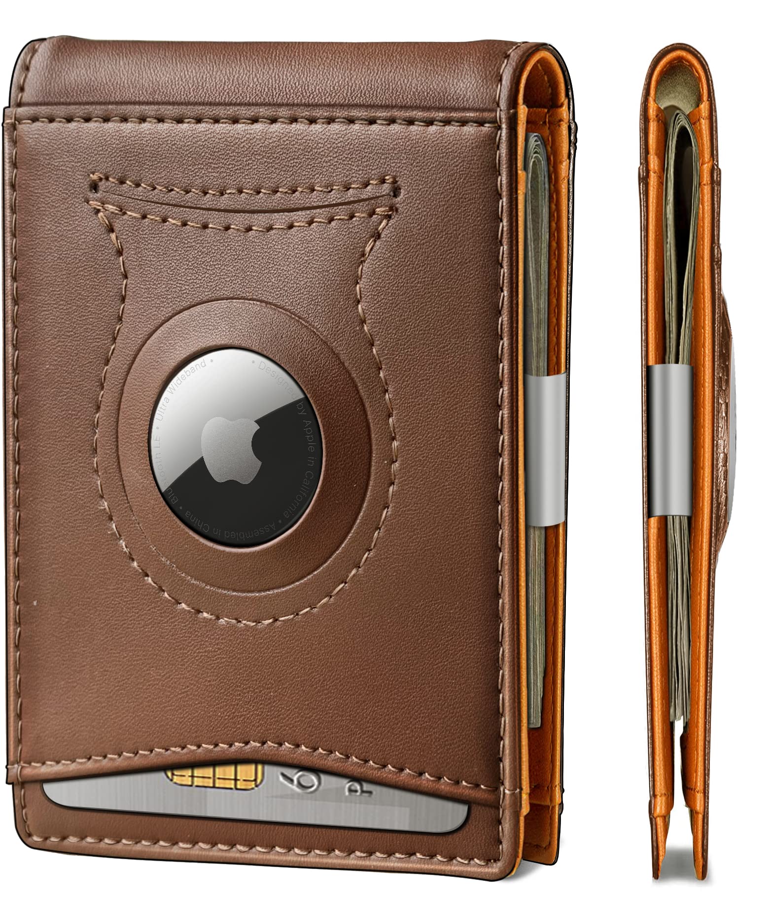 Men's Slim Leather AirTag Wallet with RFID Blocking & Money Clip