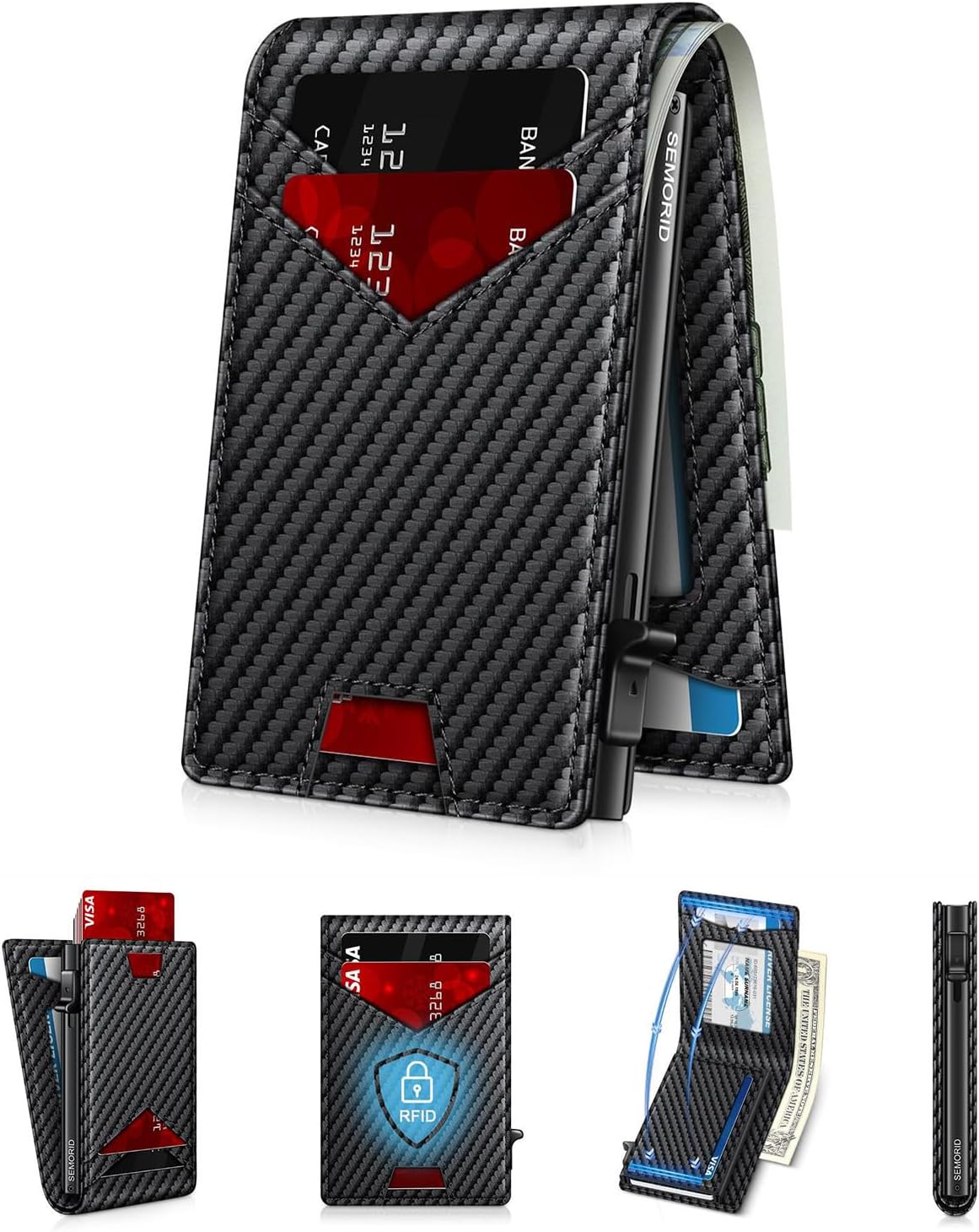 Slim RFID Wallet for Men – Carbon Fiber Pop-Up Card Holder with Money Clip, Magnetic Closure & ID Window