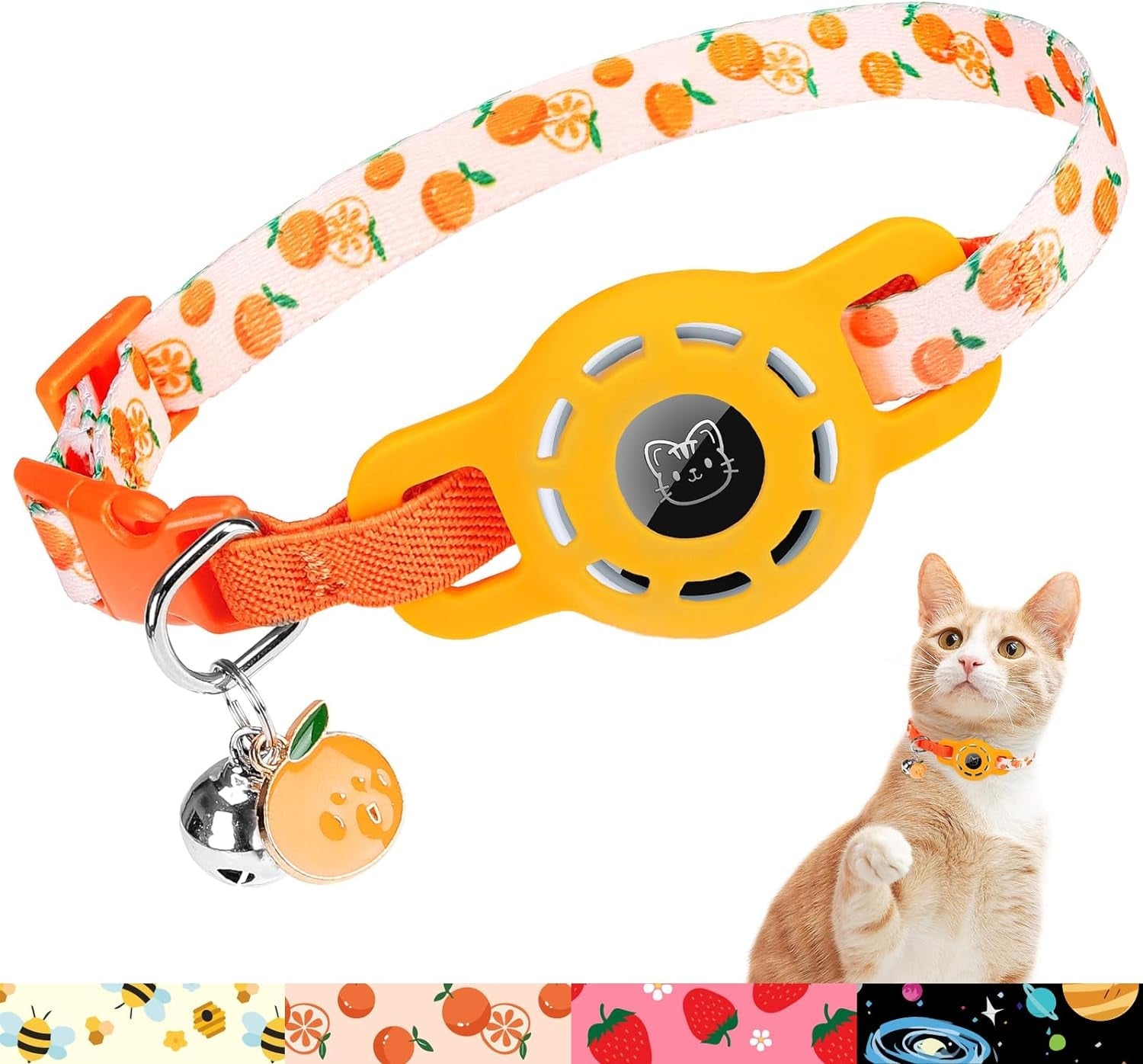 Adjustable Breakaway Cat Collar with AirTag Holder and Bell - Safe & Stylish